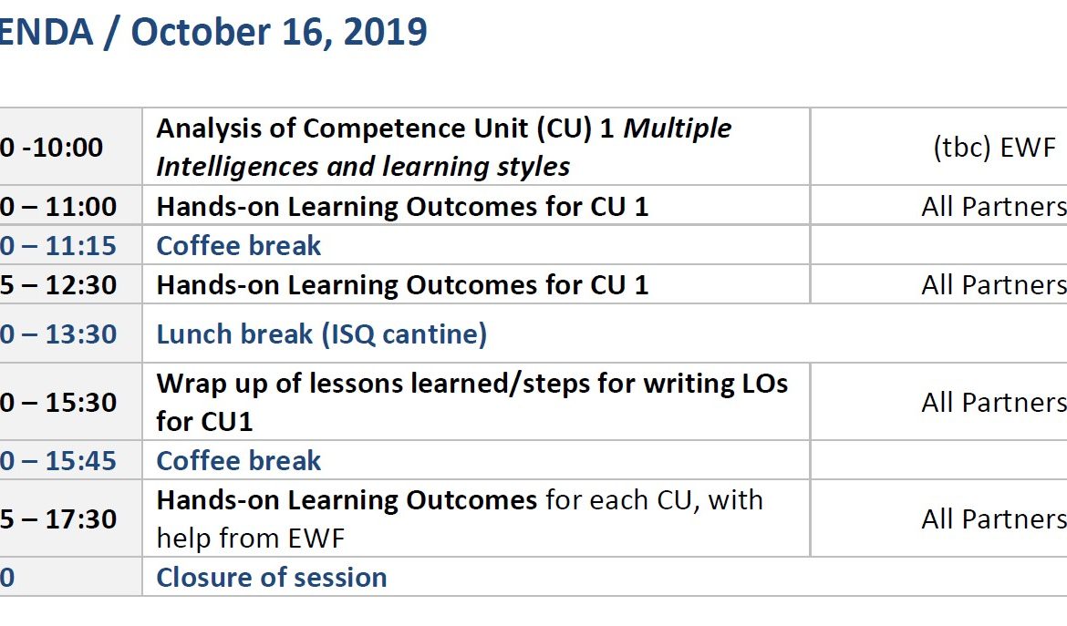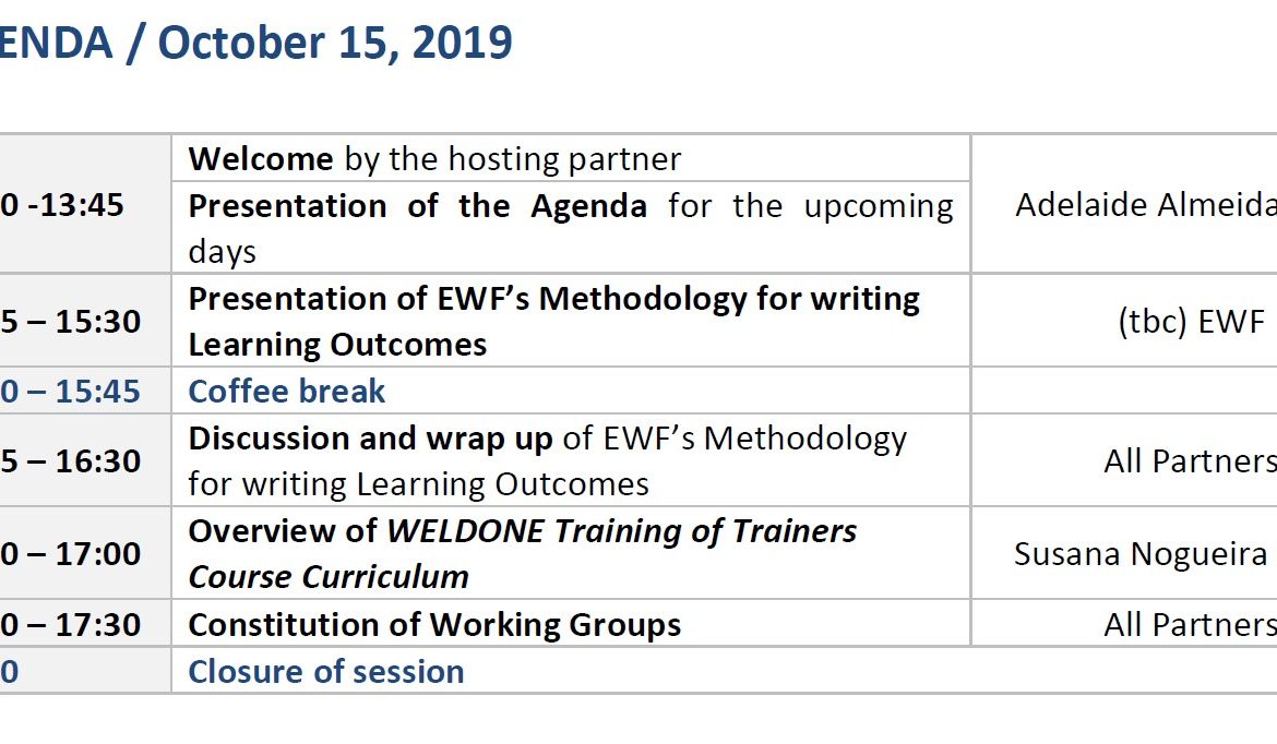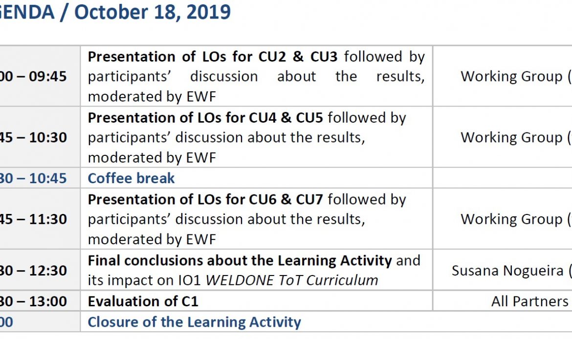 UpdatesStruka 10/11/20192467 EWF is the organizer of staff training, which will be held from 15 – 18 October 2019 at EWF facilities. Training plan: